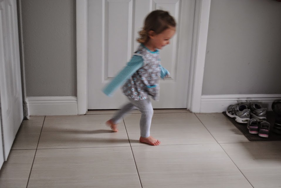 Running laps in the front entryway while waiting for dad